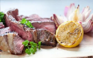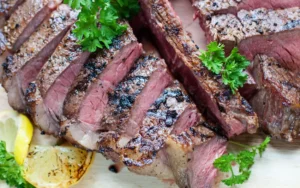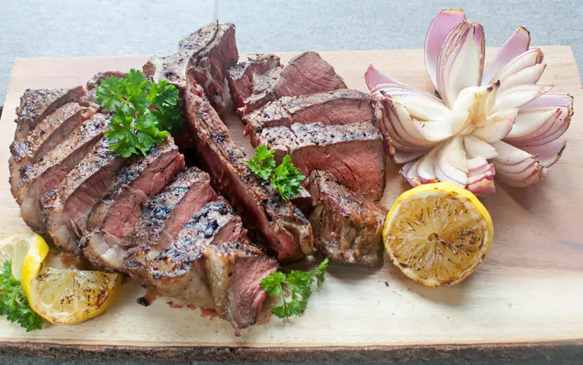 6. Precaliente la barbacoa o el quemador lateral infrarrojo a temperatura alta, alrededor de 260 °C en los quemadores principales. Selle el filete por ambos lados durante 1 o 2 minutos, o hasta que se formen las apetecibles marcas de la parrilla. Sírvase inmediatamente.