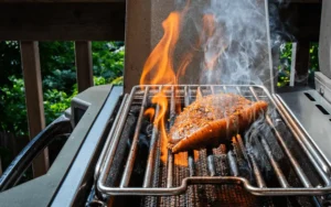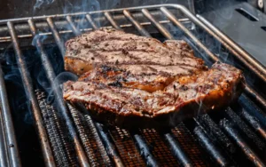 6. Comienza con el filete más grueso y séllalo a fuego alto durante 1 a 3 minutos por lado, hasta que se formen marcas de parrilla. Da vuelta y repite si es necesario. Cocina los filetes a fuego indirecto hasta alcanzar la temperatura interna deseada, aproximadamente 54°C (130°F) para un término medio.